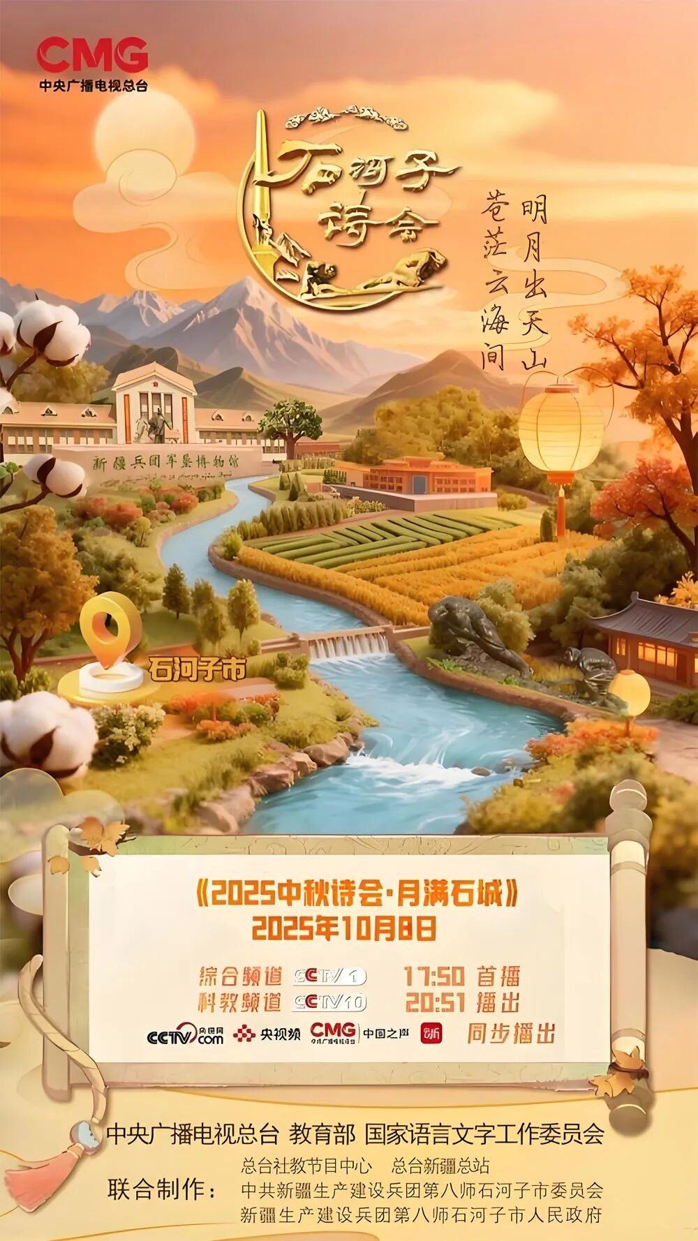 《2025中秋詩會·石河子詩會》由中央廣播電視總臺與八師石河子市聯合打造,以“主題化策劃鑄魂、時代化賦能增效、群眾化傳播潤心”為主線,深挖軍墾文化的精神內核與詩詞文化的永恒魅力。