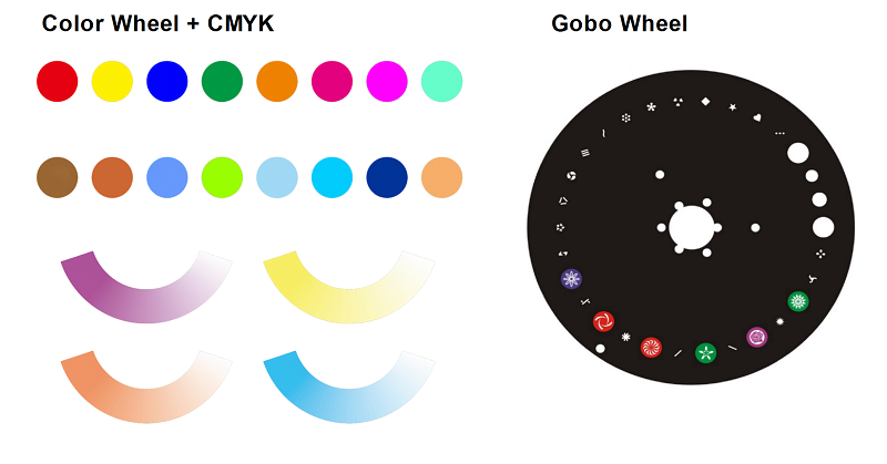 Static Gobo: 29 metal gobos + blank (include 6 glass gobos), gobo with shaking effect